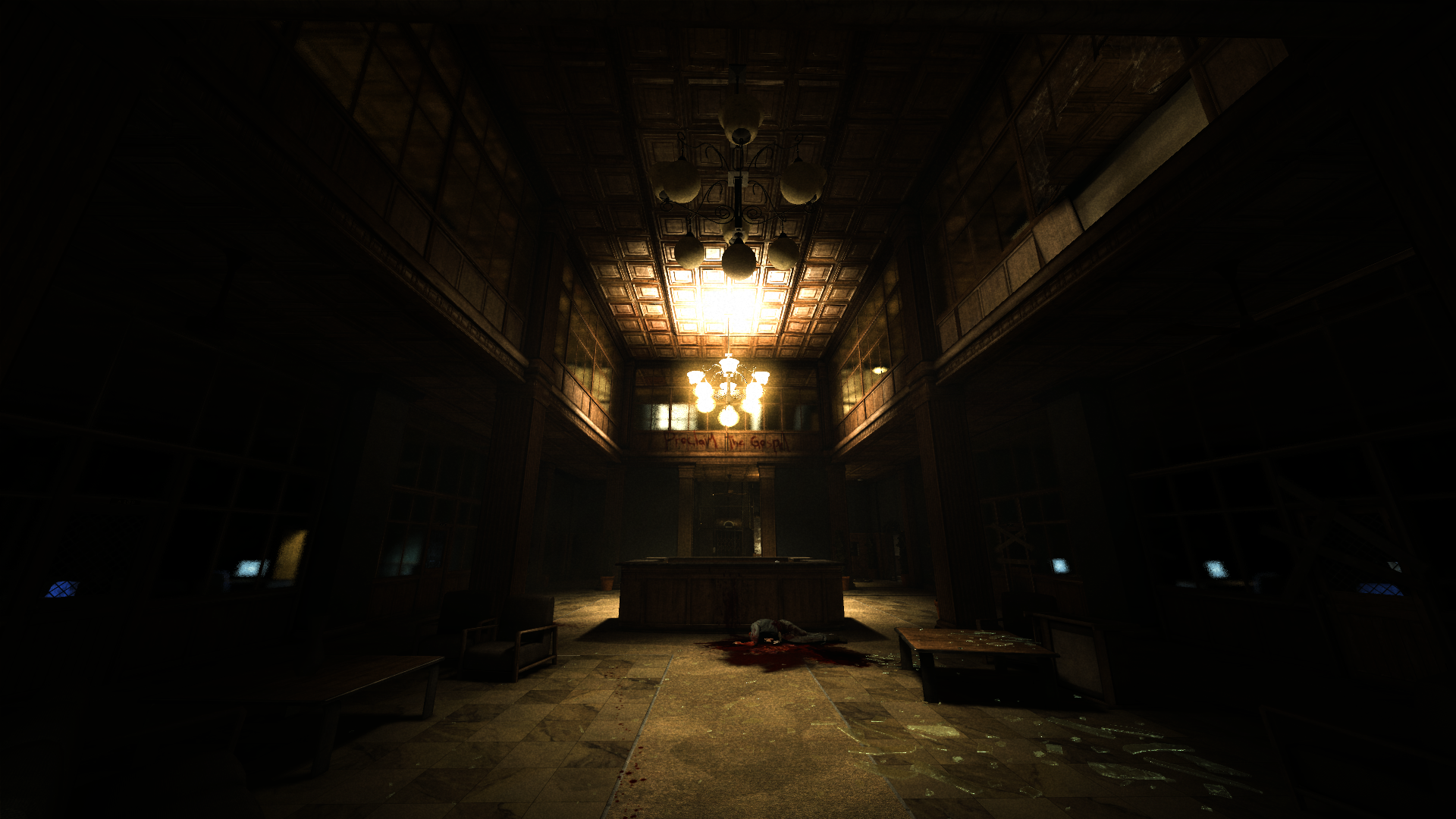 Upon entry, the lightbulb in the first room will die out, causing the area to go dark. Night vision is not required, but will aid in navigating through the surroundings to get to the nearby hall. The hall leads to several rooms, where the player can scavenge a battery for their camcorder and find a document. At the end of the hall, a glass door will block further progress, and on the left, a patient will slowly close and lock the bathroom door. An air vent in a nearby room will have to be traversed to get past it. While crawling inside the air duct, the aforementioned patient can be seen through the grid exiting the bathroom and quickly going back, locking himself in again. The upper hallway will be blocked by debris; as such, the player is required to go through the library where many bodies and severed heads are found, as well as a dying soldier who uses his last breath to warn Miles of The Variants and tells him to get out by unlocking the main doors from Security Control. Upon leaving the library, Chris Walker can be seen stalking the corridor. Upon trying to cross the debris ahead, Walker will ambush Miles and throw him through a window into the lobby below where he will meet Father Martin for the first time right before passing out and awakening shortly afterwards.