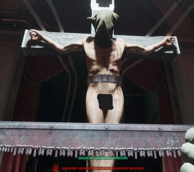 - In Red Barrels's Behind the Scenes video, it shows an early version of Bootleg Jesus in the cross made of metal instead of wood and cable wires with clamps connected through his arms and torso.
