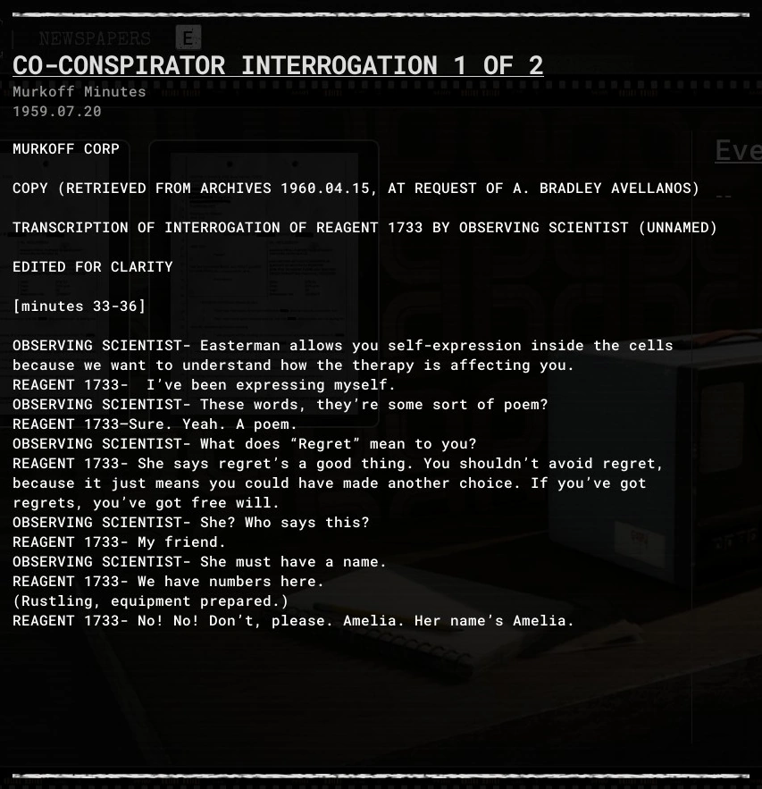 CO-CONSPIRATOR INTERROGATION 1 OF 2 is an evidence file in The Outlast Trials.