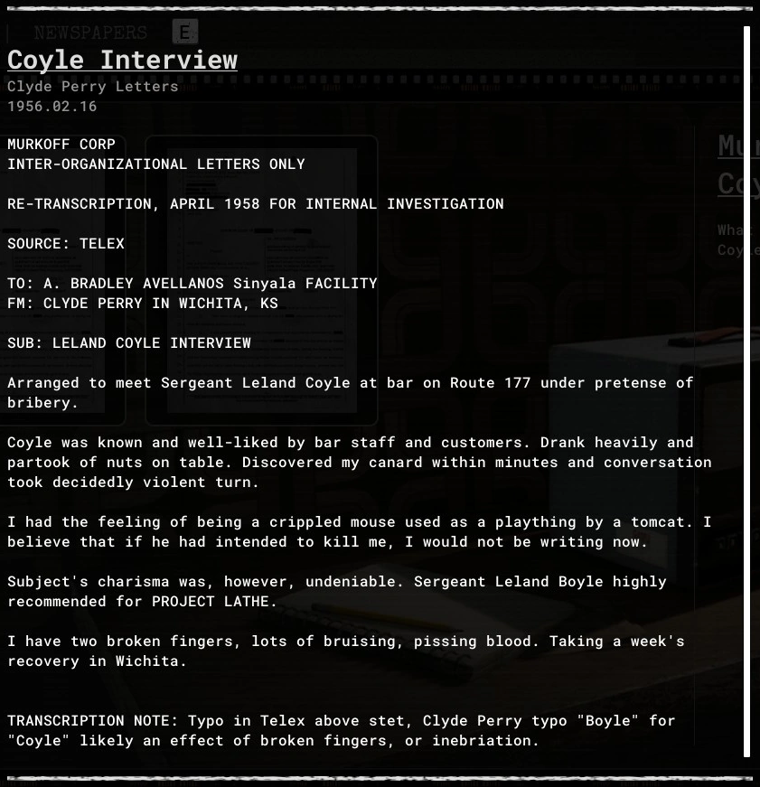 Coyle Interview is an evidence file in The Outlast Trials.