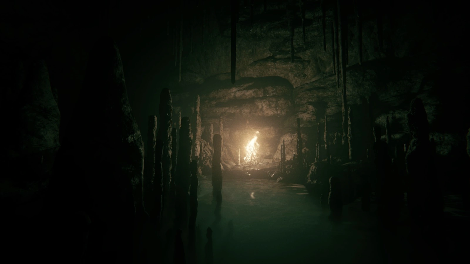 Blake climbs down a long ladder, dropping into a cave where Val finds him and chases him through a crevice. Blake walks across some wooden boards to escape her, but one of the boards breaks, dropping him into a flooded area, where two Heretics drop down and hunt him. Blake escapes and climbs up on top of some wooden scaffolding, making his way to some sort of gathering. He slides down a rock and is suddenly drugged by a Heretic, who steals his camera. The gathering is revealed to be an orgy, with Heretics engaging in sexual acts to celebrate the birth of the Antichrist. At the other end is Lynn, tied up and held by all four limbs, calling for Blake's help. Blake stumbles his way to her, only to be grabbed and head butted by Val, who holds him down and rapes him.