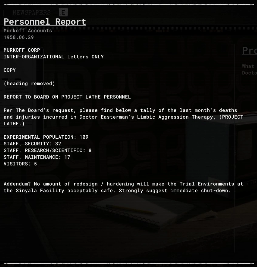 Personnel Report is an evidence file in The Outlast Trials.