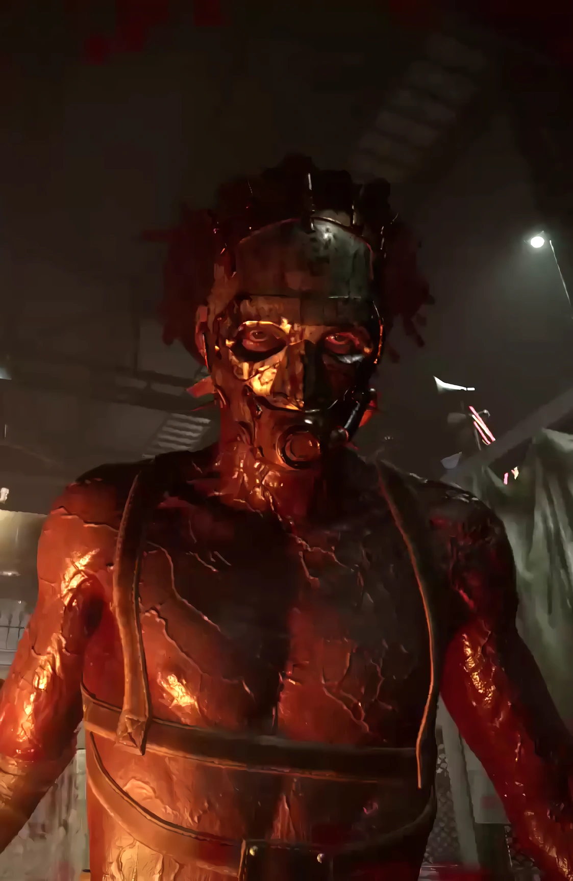 - He had a sack on his head, wears suspenders that support his pants, and does not wear any gloves or the gas tanks on his back that would connect into his mouth.