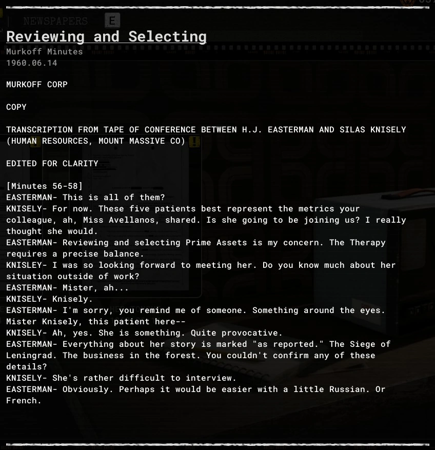 Reviewing and Selecting is an evidence file in The Outlast Trials.