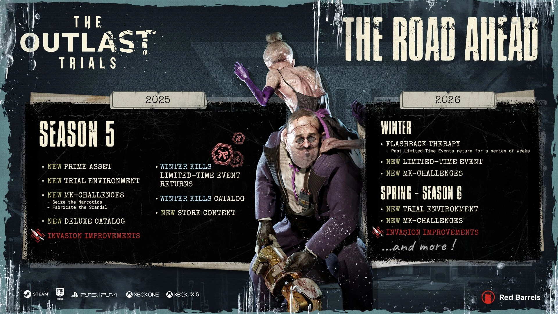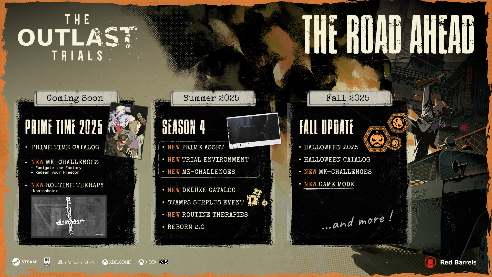 On June 3rd, 2025, the new roadmap leading to fourth season update releases in Summer, along with the second Prime Time event arriving with two new MK-Challenges: Fumigate the Factory and Redeem your Freedom, a new Prime Time Catalog, new Quality-of-Life improvements, and some lifted variator restrictions in the Trial Maker.[37] The community manager of Red Barrels have also announced that the fourth Season content update will be arrived in July.[38]